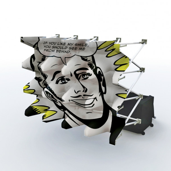 W ściance tekstylnej SOFT IMAGE wydruk tekstylny montowany jest do stelaża za pomocą rzepów. Stelaż to sprawdzona aluminiowa konstrukcja, która z powodzeniem wykorzystywana jest w ściankach reklamowych typu POP UP. Lekka, niezawodna, prosta w montażu i demontażu, zajmująca mało miejsca w transporcie. Jego producentem jest renomowana szwedzka marka EXPOLINC.